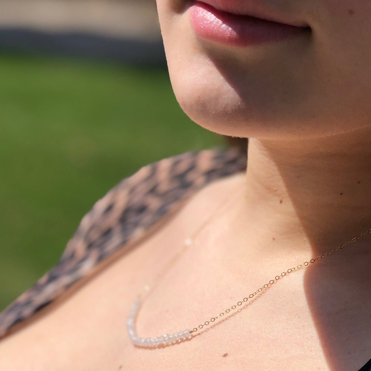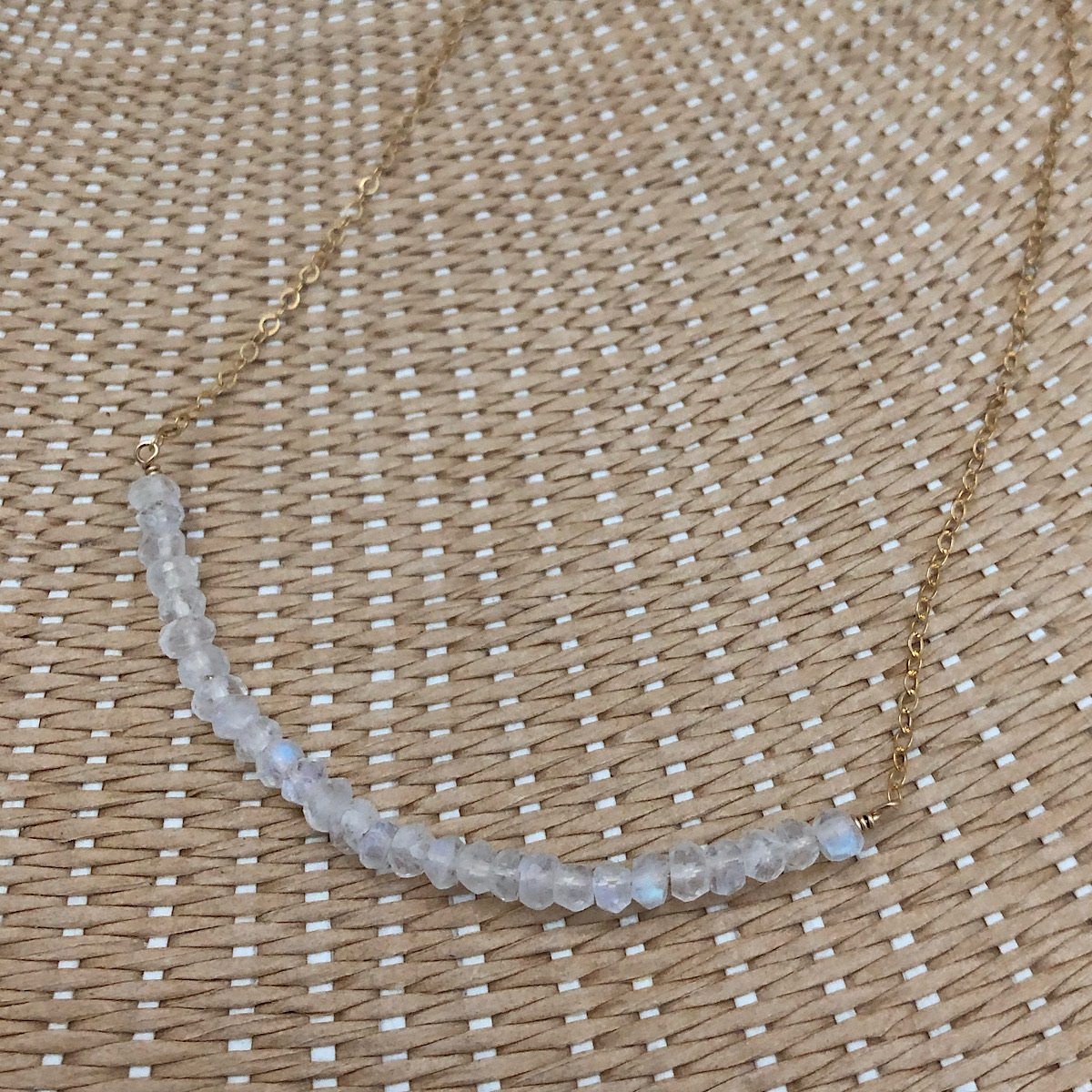 If you love a subtle glimmer with a summer tan our Moonstone Strand Necklace is for you. Fun to wear alone or layer with some of your favorites. Minimalist design but maximum impact.
