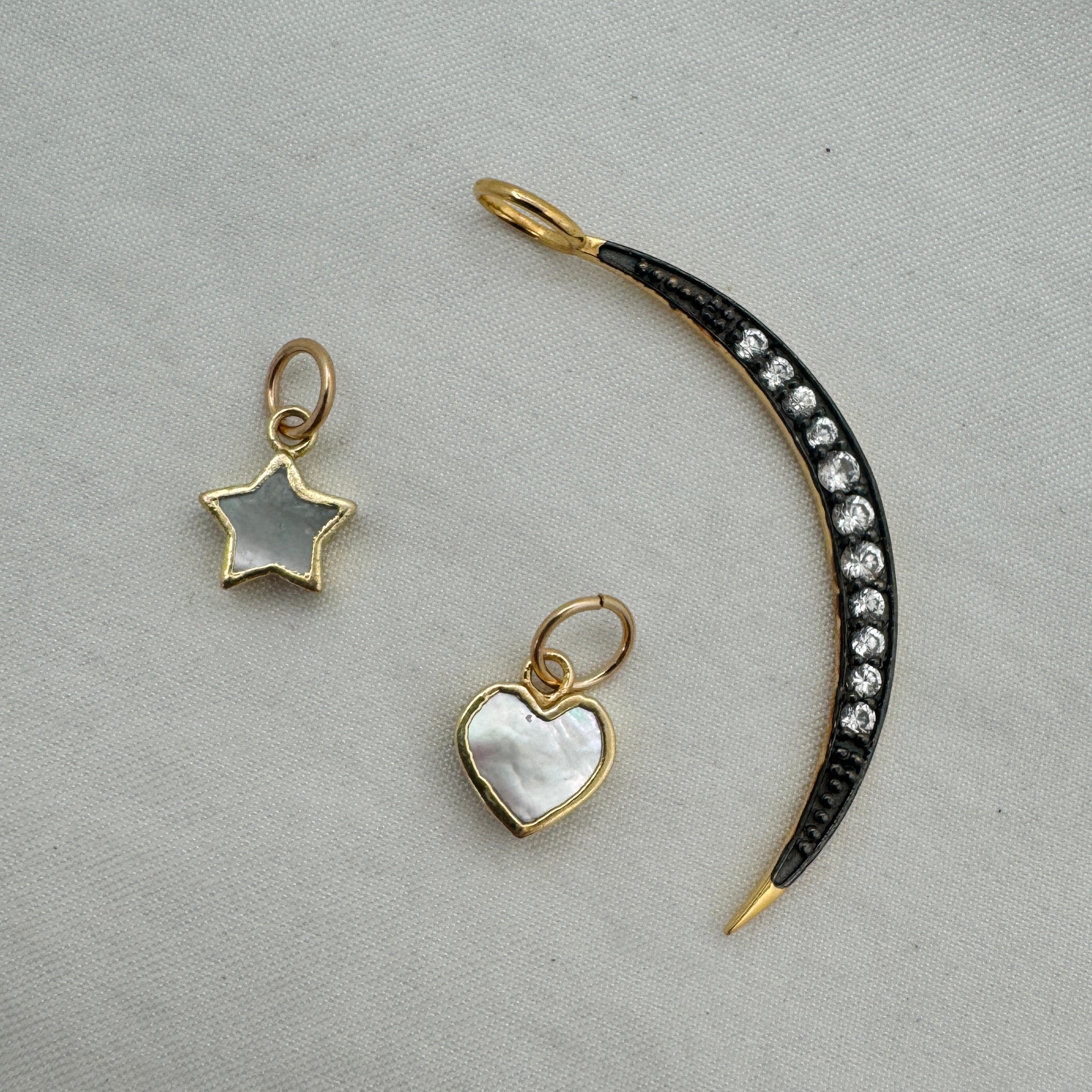 Add a little gemstone love to your charm necklace with our Mother of Pearl Heart Charm.